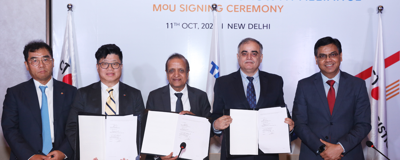 India, 12th October 2023: CJ Darcl Logistics Limited (“CJ Darcl”), a diversified logistics company in India, signs a Memorandum of Understanding (MoU) with Tata Motors Limited (“Tata Motors”), strategic engagement to strengthen and enhance CJ Darcl’s fleet of vehicles and explore options of logistics services. The MoU was signed on 11th October 2023, in the presence of Mr. Krishan Kumar Agarwal, Managing Director of CJ Darcl Logistics Limited; Mr. Kang Sin Ho, CEO of CJ Logistics Corporation; Mr. Girish Wagh, Executive Director of Tata Motors Limited and Mr. Rajesh Kaul, Vice President & Business Head – Trucks, Tata Motors.